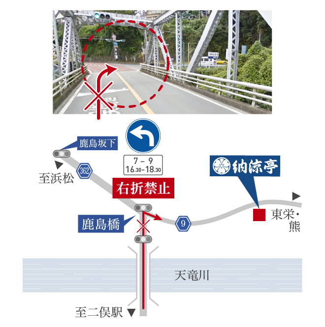 時間帯により右折禁止のご案内